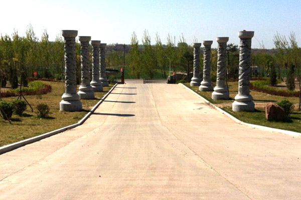 園區(qū)依山傍水,青山碧水掩映其中。石雕與槐樹根的相互輝映,傳統(tǒng)的古典建筑和現(xiàn)代化互相交替,優(yōu)雅的庭院景色配以開闊的綠樹草坪,加上秀美的園林格局以及風格迥異的藝術浮雕,使整個陵園氣勢恢宏、風范典雅、靈氣聚現(xiàn)。園門處聳立著八根巨型龍柱,兩只威武的漢白玉獅王鎮(zhèn)守左右;宏偉的牌樓前四只石獅臥守陵園。園內綠樹成蔭,假山噴泉點綴其中,二十四孝長幅石雕橫跨園中,六萬多平方米的綠化、草坪、廣場(其中有一萬多平方米的大型停車場)及兩座大型放生池。毛主席時期修建的東風渠橫跨本陵園,渠里流淌著來自******景點廣勝寺的泉水,滿目的紅花綠草、亭臺樓閣、小橋流水,自然美景映襯著人文景觀。